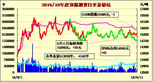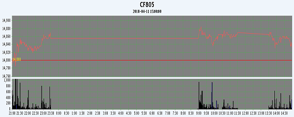 | CF805 | 14800 | 14885 | 14785 | 14830 | 14845 | 45 | 38798 | 18610 | 13770060 | 115768 | -9664 |