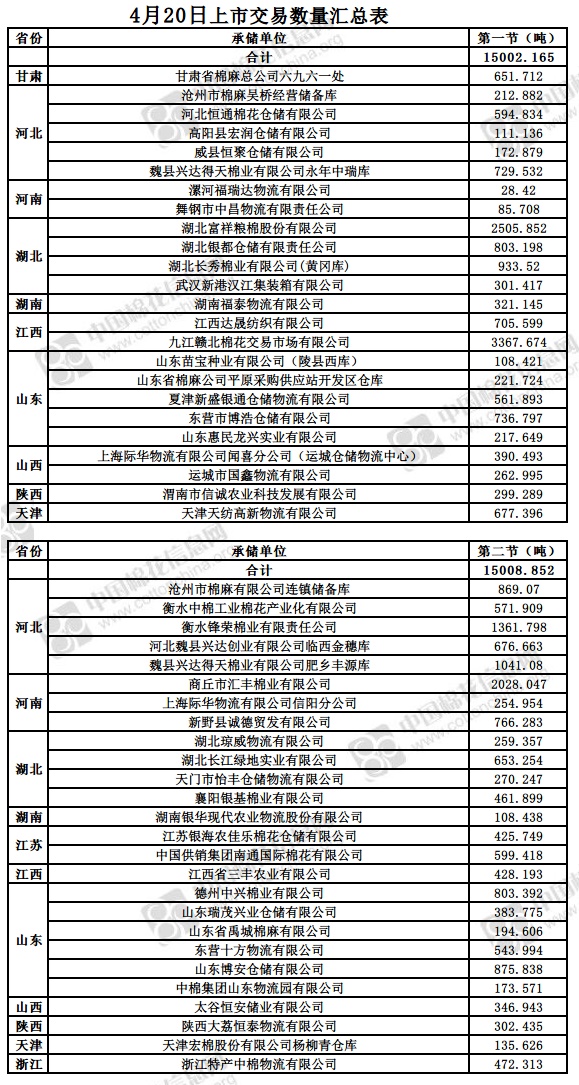 4月20日兩節(jié)共計(jì)輪出儲(chǔ)備棉30011.017噸。第一節(jié)銷售儲(chǔ)備棉15002.165噸,其中需要倒垛出庫91捆。第二節(jié)銷售儲(chǔ)備棉15008.852噸,其中需要倒垛出庫65捆。