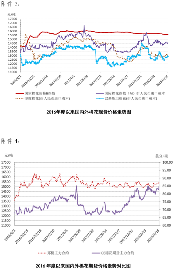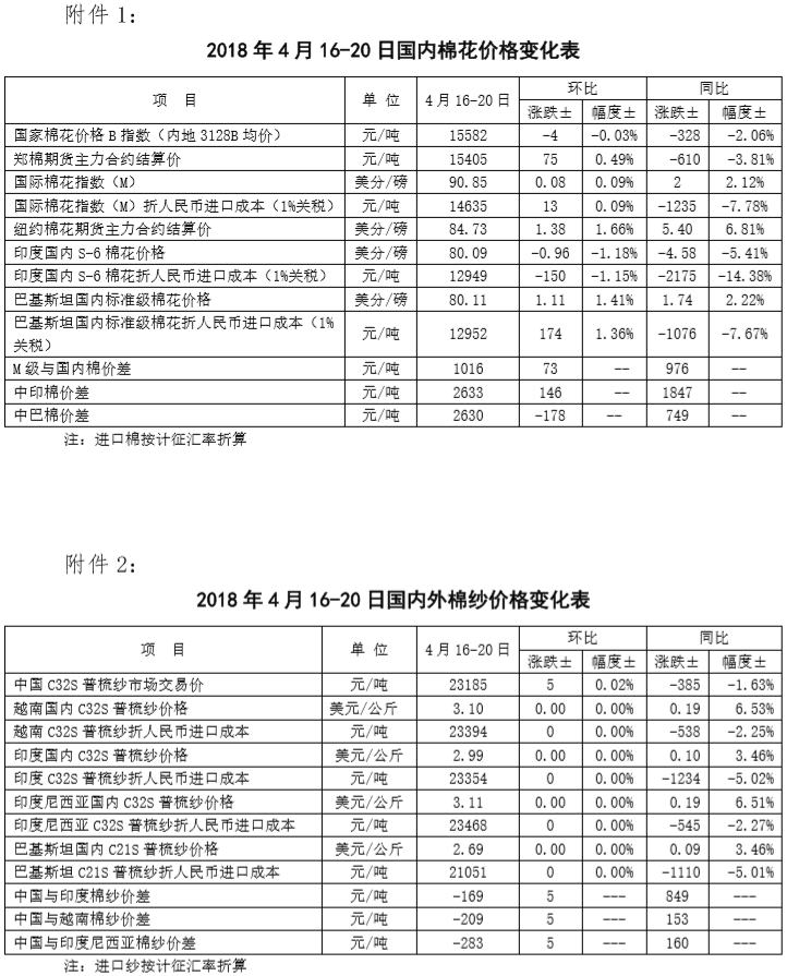 附件1:2018年4月16-20日國內(nèi)外棉花價格變化表