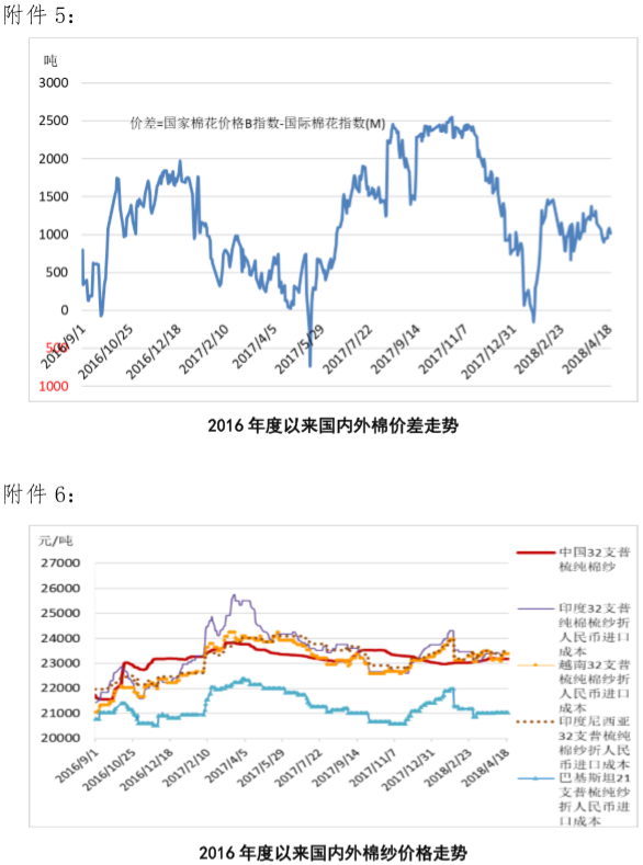 附件5:2016年度以來國內(nèi)外棉價差走勢圖