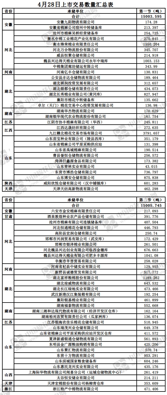4月28日兩節(jié)共計(jì)輪出儲(chǔ)備棉30009.34噸。第一節(jié)銷售儲(chǔ)備棉15003.595噸,其中需要倒垛出庫(kù)90捆。第二節(jié)銷售儲(chǔ)備棉15005.745噸,其中需要倒垛出庫(kù)84捆。
