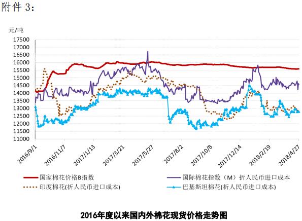 附件3:2016年度以來國內(nèi)外棉花現(xiàn)貨價格走勢圖