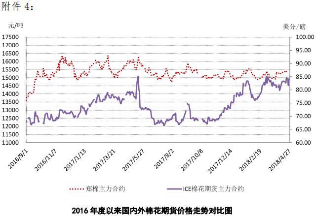 附件4:2016年度以來國內(nèi)外棉花期貨價格走勢圖