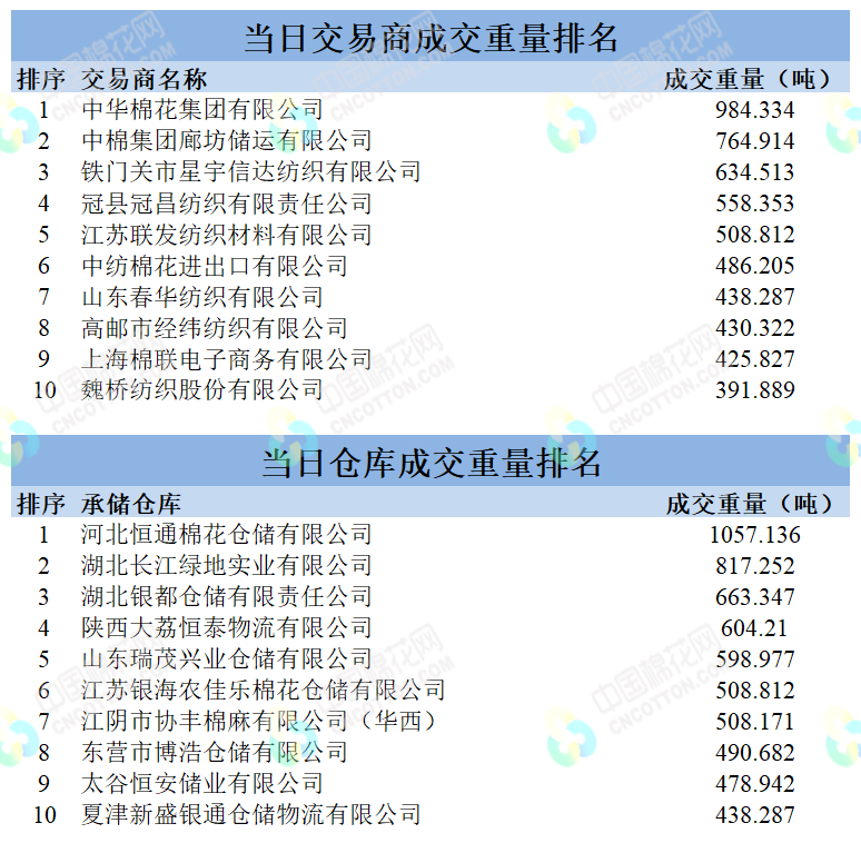 地產(chǎn)棉成交7226.668噸,成交率32%,成交均價(jià)13862元/噸,平均加價(jià)186元/噸,最高成交價(jià)14940元/噸,最低成交價(jià)13230元/噸;新疆棉成交7058噸,成交率100%,成交均價(jià)14462元/噸,平均加價(jià)717元/噸,最高成交價(jià)15540元/噸,最低成交價(jià)13710元/噸。