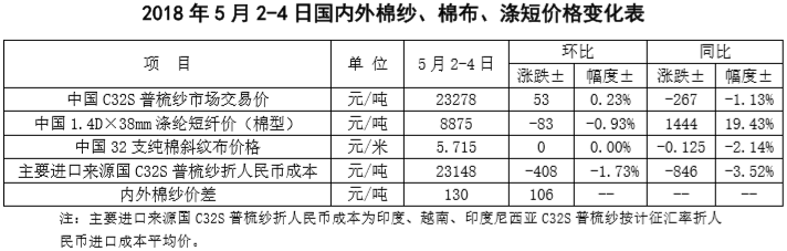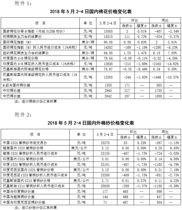 附件2:2018年5月2-4日國內(nèi)外棉紗價格變化表