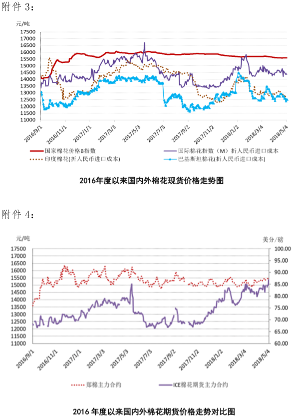 附件1:2018年5月2-4日國內(nèi)外棉花價格變化表