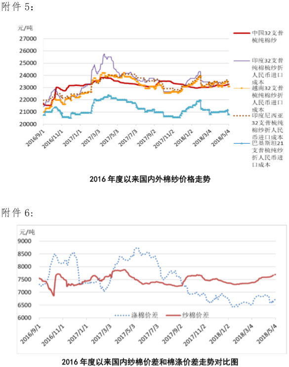 附件5:2016年度以來國內(nèi)外棉紗價格走勢圖