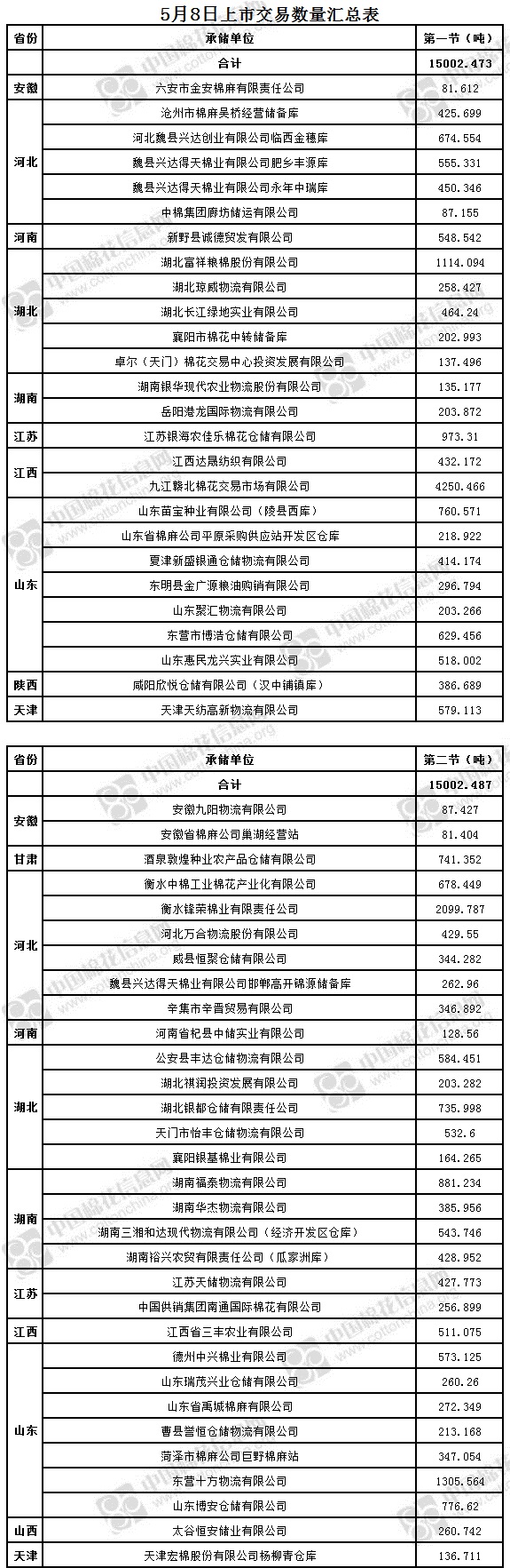 5月8日兩節(jié)共計(jì)輪出儲備棉30004.96噸。第一節(jié)銷售儲備棉15002.473噸,其中需要倒垛出庫96捆。第二節(jié)銷售儲備棉15002.487噸,其中需要倒垛出庫73捆。