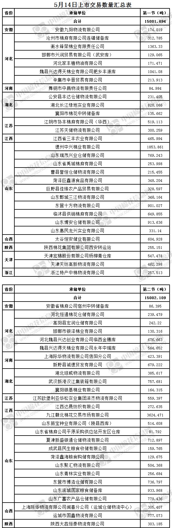 5月14日兩節(jié)共計(jì)輪出儲(chǔ)備棉30003.803噸。第一節(jié)銷售儲(chǔ)備棉15001.694噸,其中需要倒垛出庫(kù)80捆。第二節(jié)銷售儲(chǔ)備棉15002.109噸,其中需要倒垛出庫(kù)87捆。