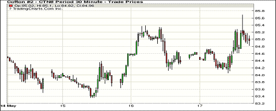 17日紐約期棉市場漲勢延續(xù)。1807合約結(jié)算價85.03美分,漲68點;1812合約結(jié)算價81.45美分,漲76點;1903合約結(jié)算價81.36美分,漲87點。當(dāng)日7月合約小幅高開,開盤后市場受支撐小幅上行,圍繞84.6美分一線震蕩運行,后賣盤入場,交易重心小幅走低,至84.2美分處市場維持窄幅震蕩態(tài)勢,后低點處買盤發(fā)力,市場被大幅拉高,至當(dāng)日高點85.69美分,賣盤低點入場,交易重心有所回落,最終以小幅上漲收盤。1807合約連續(xù)第五個交易日收漲。據(jù)美國農(nóng)業(yè)部(USDA),5.3-5.10日一周美國凈簽約出口2017/18年度陸地棉34768噸(含新簽約42706噸,另取消7938噸前期訂單),較前一周減少21%,較近4周平均簽約量減少38%;裝運2017/18年度陸地棉95867噸,較前一周減少17%,較近4周平均減少2%。外圍美元指數(shù)上漲,小麥期貨上漲,玉米和大豆期貨下跌。