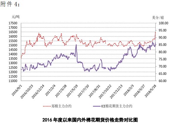 附件4:2016年度以來國(guó)內(nèi)外棉花期貨價(jià)格走勢(shì)圖