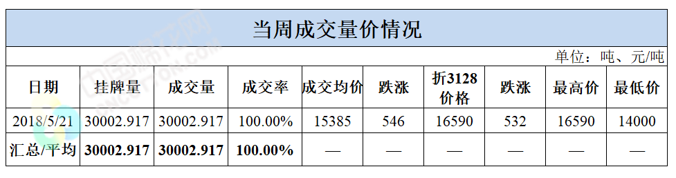 截至5月21日,累計(jì)計(jì)劃出庫(kù)147萬(wàn)噸,累計(jì)出庫(kù)成交85.3萬(wàn)噸,成交率為58%;成交最高價(jià)16590元/噸,最低價(jià)12700元/噸。
