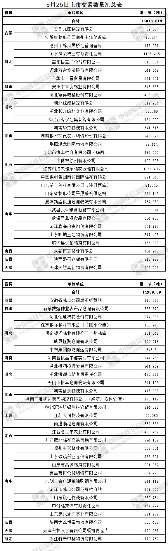 5月25日兩節(jié)共計(jì)輪出儲(chǔ)備棉30007.709噸。第一節(jié)銷售儲(chǔ)備棉15018.619噸,其中需要倒垛出庫91捆。第二節(jié)銷售儲(chǔ)備棉14989.09噸,其中需要倒垛出庫79捆。
