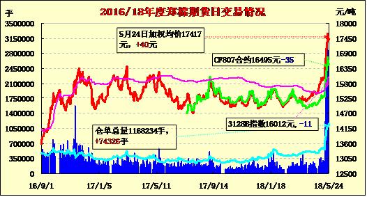 | CF807 | 16530 | 16625 | 16320 | 16590 | 16495 | -35 | 1238 | -318 | 32194 | 12000 | -398 |