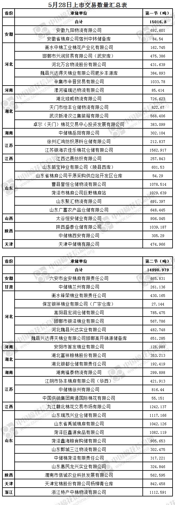 5月28日兩節(jié)共計(jì)輪出儲(chǔ)備棉30007.779噸。第一節(jié)銷(xiāo)售儲(chǔ)備棉15016.8噸,其中需要倒垛出庫(kù)78捆。第二節(jié)銷(xiāo)售儲(chǔ)備棉14990.979噸,其中需要倒垛出庫(kù)94捆。
