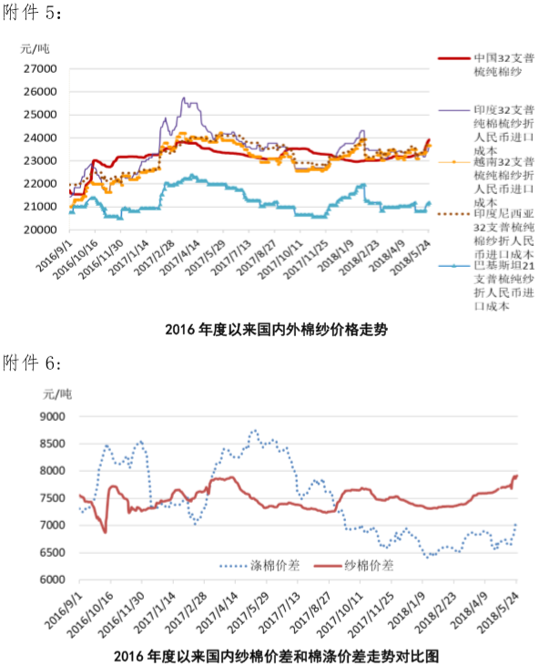 附件5:2016年度以來國內(nèi)外棉紗價(jià)格走勢圖