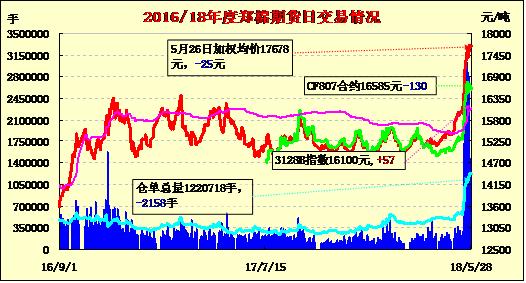| CF905 | 18255 | 18360 | 18065 | 18250 | 18245 | -60 | 75406 | -31340 | 737070 | 110944 | 5338 |