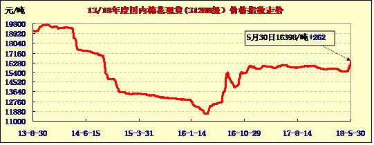 5月30日隨著內(nèi)外期貨棉價(jià)聯(lián)動(dòng)漲停,國(guó)內(nèi)現(xiàn)貨棉價(jià)大幅上調(diào)。3128標(biāo)準(zhǔn)級(jí)較昨日平均再漲262元,均價(jià)上漲至16398元/噸,為2014年10月份來(lái)最高水平,較上月漲945元/噸。其中河北、廣東、河南、江蘇、浙江等地區(qū)漲幅千元以上。據(jù)了解,受5月棉價(jià)聯(lián)動(dòng)暴漲,且幅度特大,棉花購(gòu)銷(xiāo)相對(duì)謹(jǐn)慎,棉紗屯貨惜售較為突出。