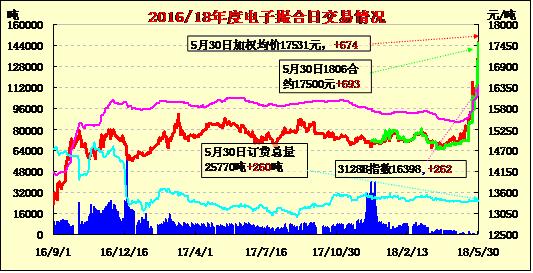 5月30日電子撮合交易成交量減少,市場所有合同多數(shù)有成交,合同均價(jià)有所上漲,MA1807上漲最大,截至收盤上漲704元/噸,其中訂貨量最大的合同為MA1807,累計(jì)訂貨量為7430噸。美國最大的產(chǎn)棉州德州天氣持續(xù)干旱,當(dāng)?shù)販囟冉咏o(jì)錄最高氣溫,對作物生長不利,另外熱帶風(fēng)暴的發(fā)展,對于三角洲及東南部各州的影響也令人擔(dān)憂;二是中國因素,中國期現(xiàn)貨價(jià)格近期漲幅較大,尤其是鄭棉期貨接近漲停價(jià)格,也扶助了美棉價(jià)格上行。