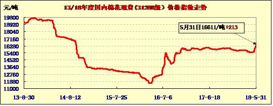 5月31日隨著內(nèi)外期貨棉價(jià)聯(lián)動漲停,國內(nèi)現(xiàn)貨棉價(jià)大幅上調(diào)。31日,3128標(biāo)準(zhǔn)級較昨日平均再漲213元,均價(jià)上漲至16611元/噸,為2014年10月份來最高水平,較上月漲1158元/噸,其中5月17-31日的11個交易日就漲1065元。與此同時,一直清淡交易的輪儲棉自5月21日開始,量價(jià)齊升,交易活躍,每日3萬噸的輪儲量100%成交,折328標(biāo)準(zhǔn)級價(jià)格由每噸15600元上升至17000元以上。另外棉紗價(jià)格也被迫作出大幅調(diào)整,這完全是鄭棉期貨基金炒作所至。受此行情影響,許多貿(mào)易商進(jìn)退兩難,棉花購銷相對謹(jǐn)慎,據(jù)悉一貿(mào)易商前日上午報(bào)價(jià)上漲300元/噸,但午后隨著走貨不佳及期貨出現(xiàn)尾盤回落下,報(bào)價(jià)再次回調(diào)300元/噸。許多紡織企業(yè)也紛紛上調(diào)棉紗報(bào)價(jià),棉紗屯貨惜售也較為突出。目前市場上新棉現(xiàn)貨因價(jià)高而難有成交,基本成交集中在國儲上,據(jù)悉,因近期棉花價(jià)格大幅波動,國儲輪出方面可能將出臺禁止貿(mào)易商參與拍儲的政策規(guī)定,目前得知具體文件將在本周公布并從6月開始實(shí)行,但具體事宜仍待正式文件公布,未正式公布前仍有變數(shù)。