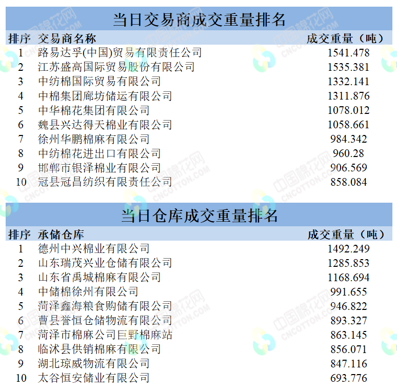 地產(chǎn)棉成交6628.692噸,成交率100%,成交均價(jià)15439元/噸,平均加價(jià)1374元/噸,最高成交價(jià)16990元/噸,最低成交價(jià)14350元/噸;新疆棉成交23371.8932噸,成交率100%,成交均價(jià)16033元/噸,平均加價(jià)1885元/噸,最高成交價(jià)17520元/噸,最低成交價(jià)15160元/噸。