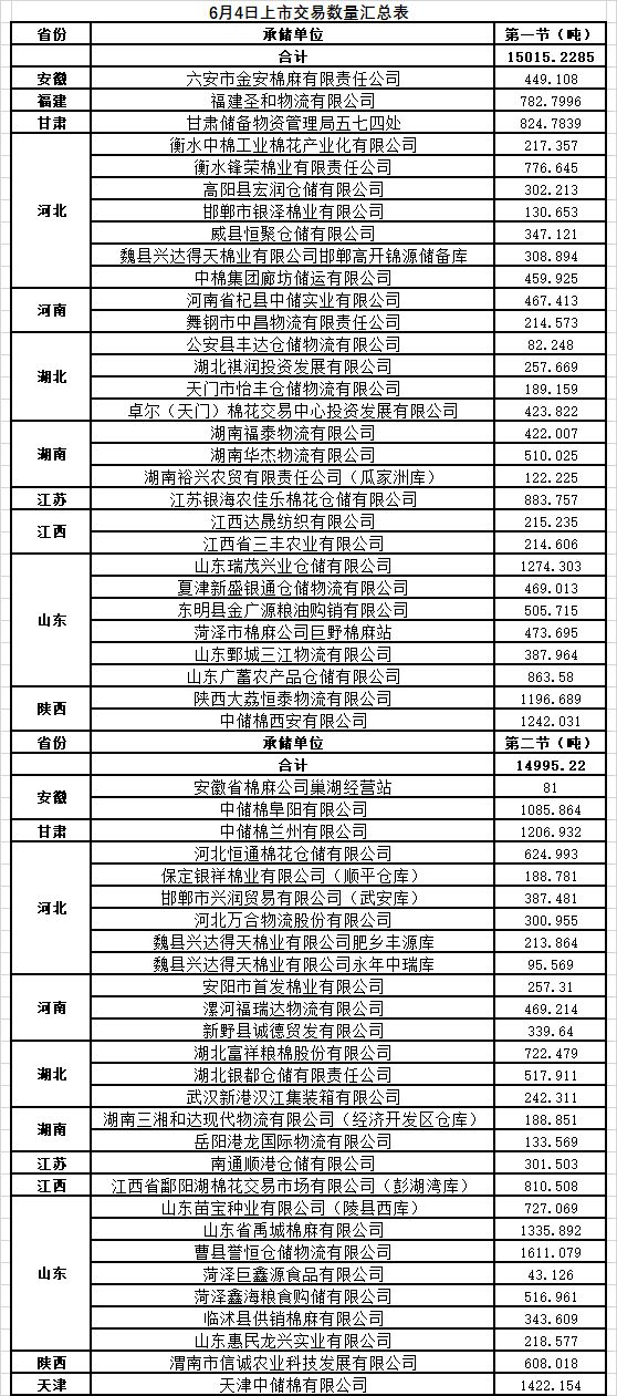 6月4日兩節(jié)共計(jì)輪出儲(chǔ)備棉30010.4485噸。第一節(jié)銷售儲(chǔ)備棉15015.2285噸,其中需要倒垛出庫(kù)89捆。第二節(jié)銷售儲(chǔ)備棉14995.22噸,其中需要倒垛出庫(kù)86捆。