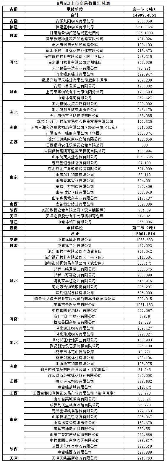 6月5日兩節(jié)共計(jì)輪出儲(chǔ)備棉30000.9693噸。第一節(jié)銷售儲(chǔ)備棉14999.4553噸,其中需要倒垛出庫(kù)83捆。第二節(jié)銷售儲(chǔ)備棉15001.514噸,其中需要倒垛出庫(kù)106捆。