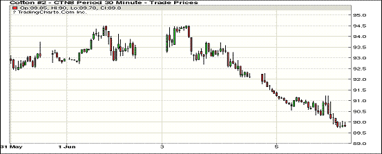 5日紐約期棉市場(chǎng)全面收跌。1807合約結(jié)算價(jià)89.84美分,跌226點(diǎn);1812合約結(jié)算價(jià)88.98美分,跌196點(diǎn);1903合約結(jié)算價(jià)88.81美分,跌188點(diǎn)。其他合約下跌35-211點(diǎn)不等。當(dāng)日12月合約小幅低開,開盤后因缺乏有利支撐交易重心下行,在88-88.50區(qū)間震蕩運(yùn)行,后買盤入場(chǎng),市場(chǎng)受支撐小幅走高,上行突破90美分,但因上漲動(dòng)力不足,迅速回落至89美分一線并維持震蕩運(yùn)行態(tài)勢(shì),最終因上漲動(dòng)力不足,未能站穩(wěn)89美分,以大幅下跌收盤。過去兩個(gè)交易日中,1812合約累計(jì)下跌338點(diǎn)。周二鄭棉大幅下挫,最終封于跌停。而美國(guó)西德州部分旱地區(qū)域雖然上周末期間出現(xiàn)有利降雨,但遠(yuǎn)不足以改善當(dāng)?shù)睾登?。且根?jù)近期預(yù)報(bào)來看,該區(qū)域大部本周降雨概率極低。外圍美元指數(shù)下跌,大豆、玉米和小麥期貨上漲。