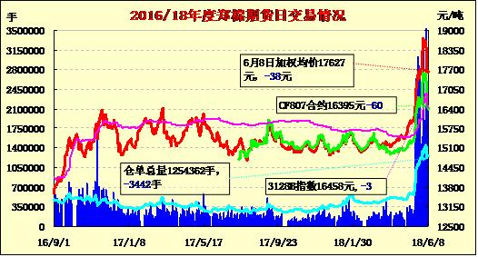 | CF905 | 18280 | 18400 | 18100 | 18180 | 18250 | -55 | 130268 | -17340 | 2316790 | 200462 | 2632 |