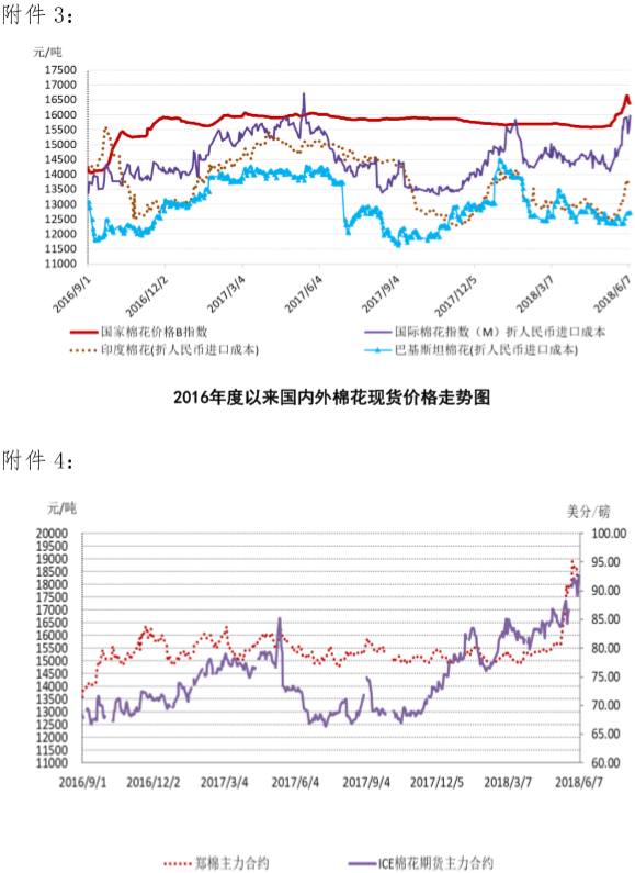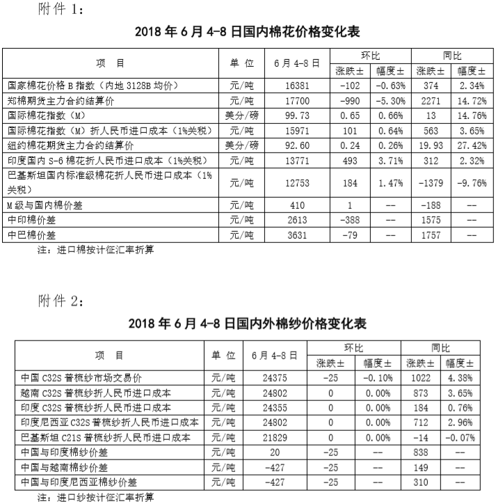 附件1:2018年6月4-8日國內(nèi)外棉花價(jià)格變化表