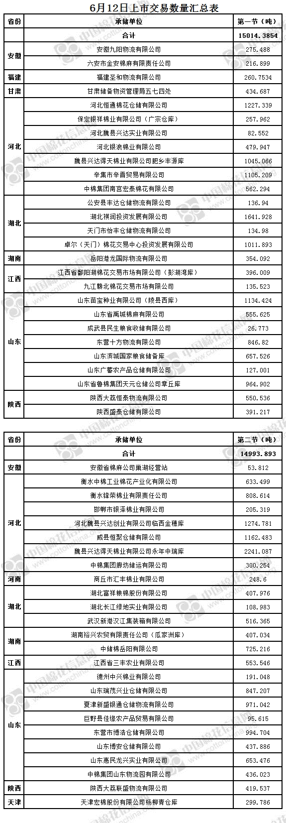 6月12日兩節(jié)共計(jì)輪出儲(chǔ)備棉30008.2784噸。第一節(jié)銷售儲(chǔ)備棉15014.3854噸,其中需要倒垛出庫93捆。第二節(jié)銷售儲(chǔ)備棉14993.893噸,其中需要倒垛出庫93捆。