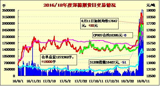 | CF811 | 17290 | 17510 | 17105 | 17460 | 17205 | -125 | 334 | 208 | 8388 | 1548 | 20 |