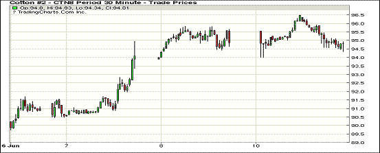 6月11日紐約期棉市場全面收跌。1807合約結(jié)算價94.75美分,跌19點(diǎn);1812合約結(jié)算價91.68美分,跌92點(diǎn);1903合約結(jié)算價91.58美分,跌82點(diǎn)。其他合約下跌33-75點(diǎn)不等。當(dāng)日12月合約小幅低開,開盤后受支撐交易重心走高,至當(dāng)日高點(diǎn)93.50美分處賣盤入場,交易重心承壓走低,后因缺乏有利支撐,市場維持震蕩下行趨勢,最終跌勢收盤。11號為某多頭基金7/12月移倉第三天。外圍美元指數(shù)上漲,玉米、小麥和大豆期貨下跌。