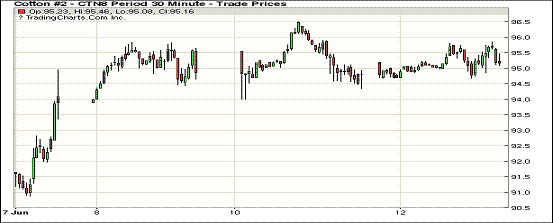 6月12日紐約期棉市場全面收漲。1807合約結(jié)算價95.21美分,漲46點;1812合約結(jié)算價92.90美分,漲122點;1903合約結(jié)算價92.79美分,漲121點。其他合約上漲23-112點不等。當(dāng)日12月合約穩(wěn)定開盤,開盤后交易重心震蕩運行,整體呈小幅上升態(tài)勢,美國農(nóng)業(yè)部(USDA)月報發(fā)布后,市場迅速應(yīng)聲大幅走高,至當(dāng)日高點93.19美分處賣盤入場,交易重心承壓走低,后買盤發(fā)力,市場受支撐回彈,圍繞93美分一線震蕩運行,最終以大漲收盤。據(jù)美國農(nóng)業(yè)部(USDA)最新發(fā)布的6月份全球棉花供需預(yù)測報告,2017/18年度全球棉花產(chǎn)量較5月份略有上調(diào),消費量基本持平,期末庫存總量未做調(diào)整。對比2018/19年度平衡表數(shù)據(jù)中,預(yù)計下年度全球棉花產(chǎn)量整體下調(diào),消費量略減,期末庫存繼續(xù)下調(diào)。12號為某多頭基金7/12月移倉第四天。外圍美元指數(shù)上漲,玉米、小麥和大豆期貨上漲。