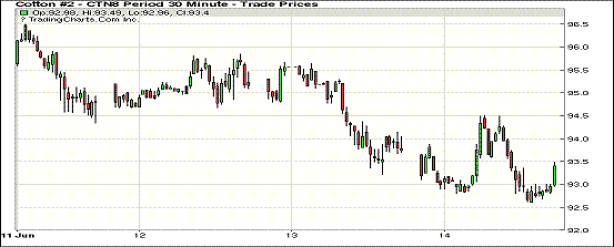 14日紐約期棉主力合約小幅收漲。1807合約結(jié)算價93.41美分,跌40點;1812合約結(jié)算價92.96美分,漲3點;1903合約結(jié)算價92.86美分,漲4點。當日12月合約小幅低開,開盤后因缺乏有利支撐交易重心走低,在中國發(fā)布增發(fā)棉花進口滑準稅配額公告之后,市場應(yīng)聲快速上行,后維持在93.00-93.40美分區(qū)間高位震蕩運行,至當日高點93.33美分處賣盤入場,市場承壓下行,后維持震蕩運行態(tài)勢,臨近收盤買盤發(fā)力,交易重心受支撐走高,最終以小幅上漲收盤。據(jù)美國農(nóng)業(yè)部(USDA),6.1-6.7日一周美國凈簽約出口2017/18年度陸地棉7893噸(含新簽約19255噸,另取消11363噸前期訂單),較前一周大幅度增加,較近4周平均簽約量減少39%;裝運2017/18年度陸地棉104304噸,較前一周減少20%,較近4周平均增加4%。外圍美元指數(shù)上漲,玉米、小麥和大豆期貨下跌。