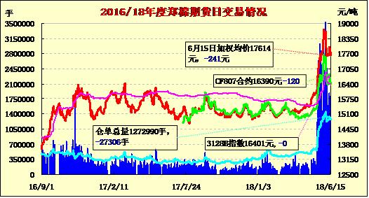 | CF807 | 16420 | 16510 | 16300 | 16325 | 16390 | -120 | 526 | 106 | 50024 | 13938 | 232 |