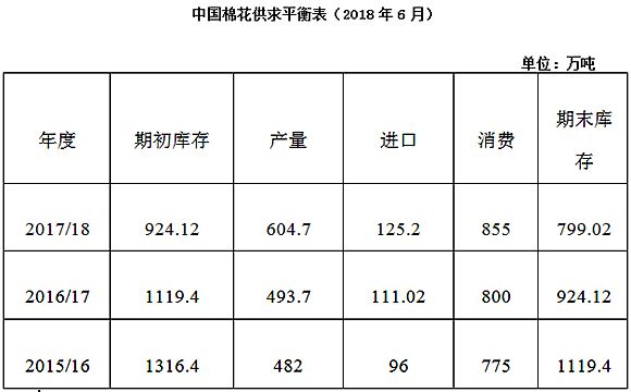為應對價格的異常波動,保持市場的穩(wěn)定,保障紡織企業(yè)用棉需要,全國棉花交易市場和中儲棉公司發(fā)布公告,自6月4日起,儲備棉輪出交易僅限棉紡織企業(yè)參與,且僅限本企業(yè)自用,不得轉(zhuǎn)賣。國家發(fā)改委6月14日發(fā)布公告,今年發(fā)放一定數(shù)量的棉花進口滑準稅配額,配額數(shù)量為80萬噸,全部為非國營貿(mào)易配額。為此,中國棉花供求平衡表調(diào)增2017/18度的棉花進口數(shù)量為125.2萬噸,較上期增加20萬噸。