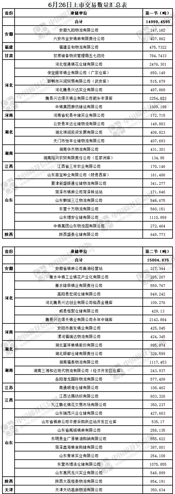 6月26日兩節(jié)共計(jì)輪出儲(chǔ)備棉30004.3345噸。第一節(jié)銷(xiāo)售儲(chǔ)備棉14999.4595噸,其中需要倒垛出庫(kù)75捆。第二節(jié)銷(xiāo)售儲(chǔ)備棉15004.875噸,其中需要倒垛出庫(kù)84捆。
