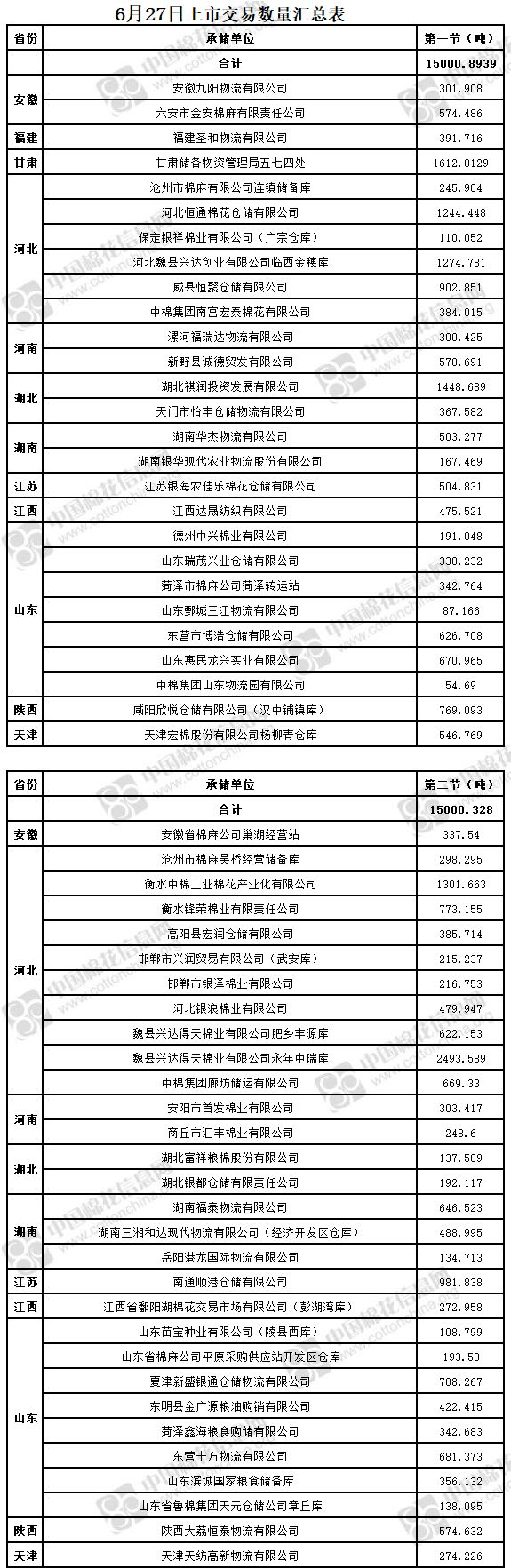 6月27日兩節(jié)共計輪出儲備棉30001.2219噸。第一節(jié)銷售儲備棉15000.8939噸,其中需要倒垛出庫71捆。第二節(jié)銷售儲備棉15000.328噸,其中需要倒垛出庫81捆。