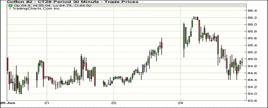 6月25日紐約期棉市場主力合約收跌。1812合約結(jié)算價(jià)84.92美分,跌38點(diǎn);1903合約結(jié)算價(jià)84.73美分,跌16點(diǎn);1905合約結(jié)算價(jià)84.75美分,跌7點(diǎn)。當(dāng)日12月合約平穩(wěn)開盤,開盤后受支撐交易重心上行,至當(dāng)日高點(diǎn)86.22美分處賣盤入場,市場承壓走低,因缺乏有利支撐,交易期間跌幅繼續(xù)加深,最終以小幅下跌收盤。美國農(nóng)業(yè)部(USDA)即將發(fā)布作物種植面積報(bào)告,市場普遍關(guān)注。有預(yù)測稱本年度美棉種植面積可能高于三月份發(fā)布的種植面積預(yù)期。外圍美元指數(shù)下跌,玉米、大豆和小麥期貨下跌。