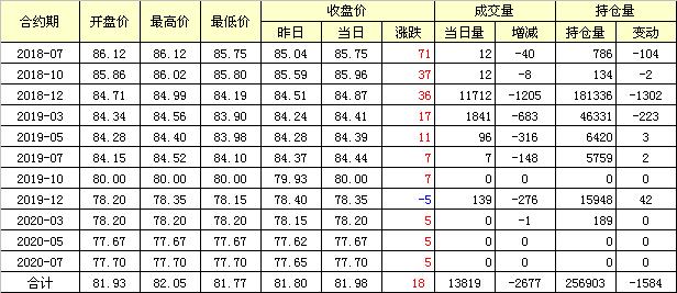 主力1812合約近三個(gè)交易走勢(shì)圖