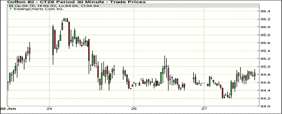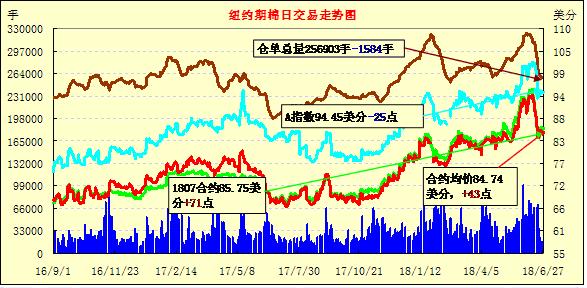 6月27日紐約期棉市場(chǎng)整體收漲。1812合約結(jié)算價(jià)84.87美分,漲36點(diǎn);1903合約結(jié)算價(jià)84.41美分,漲17點(diǎn);1905合約結(jié)算價(jià)84.39美分,漲11點(diǎn)。當(dāng)日12月合約小幅高開,開盤后因缺乏有利支撐交易重心下行,至當(dāng)日低點(diǎn)84.19美分處買盤發(fā)力,市場(chǎng)受支撐走高,后在84.50-85.00美分區(qū)間震蕩運(yùn)行,最終以小幅上漲收盤。美棉出口周報(bào)及作物種植面積報(bào)告發(fā)布在即,市場(chǎng)普遍持觀望態(tài)度。外圍美元指數(shù)上漲,玉米、大豆和小麥期貨上漲。美股高開低走,三大股指全面收跌。