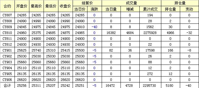 主力CY810合約當日交易走勢