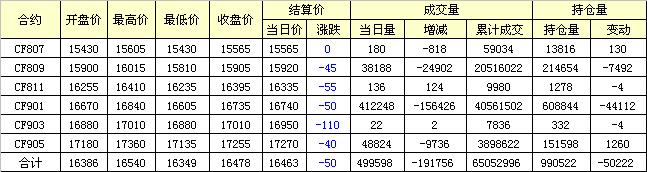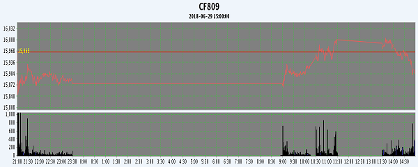 6月29日周三紐約棉花期貨收跌,隔夜鄭棉回升震蕩,今日早盤在空頭回補(bǔ)失去下繼續(xù)反彈,午后小幅調(diào)整,日線形成小陽線。日內(nèi)成交量萎縮,持倉量減少?;久媲闆r:上周美國凈簽約本年度陸地棉-4286噸,裝運(yùn)83416噸。凈簽約下年度陸地棉44497噸。