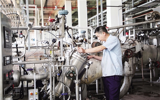 近日,位于濱海的浙江新益印染有限公司內(nèi),100多臺汽液染色機(jī)、定型機(jī)等進(jìn)口設(shè)備正在運(yùn)行,工人們來回穿梭于設(shè)備間。新益印染花巨資引進(jìn)綠色環(huán)保設(shè)備,還建起定型機(jī)廢氣油煙凈化裝置,廠區(qū)聞不到異味,是綠色印染的踐行者。(標(biāo)題:新益印染 綠色印染踐行者)