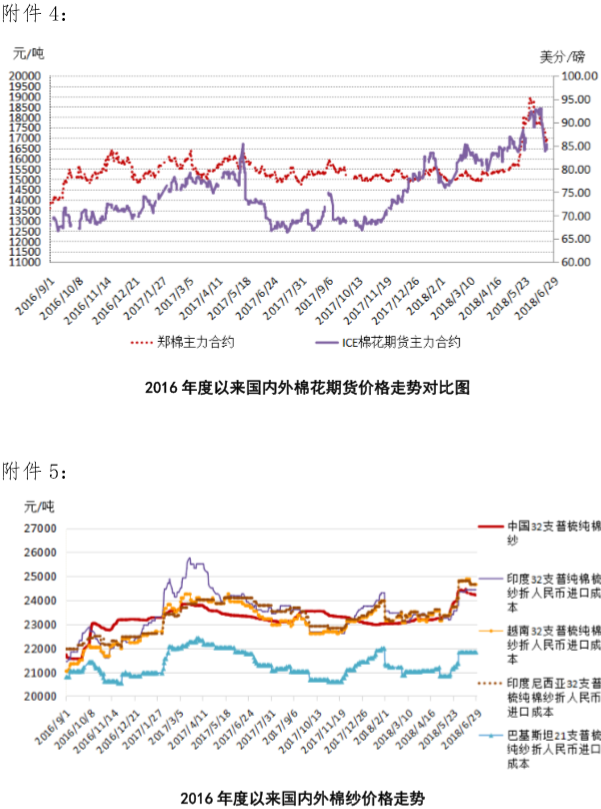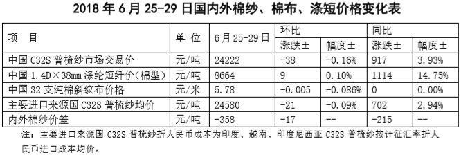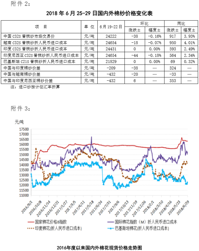 附件2:2018年6月25-29日國(guó)內(nèi)外棉紗價(jià)格變化表