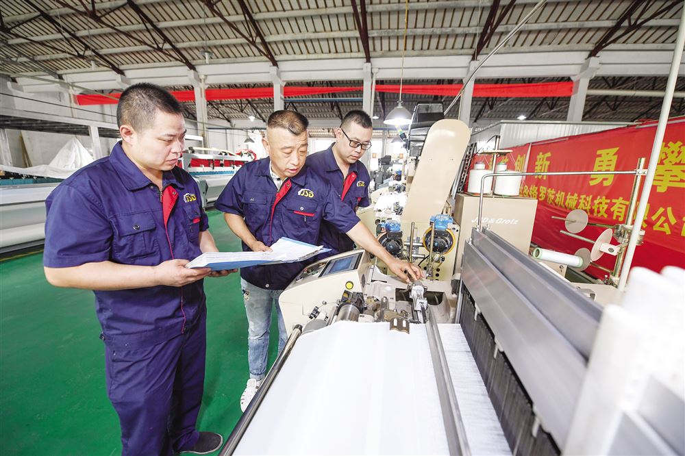 近日,走進位于盛澤鎮(zhèn)的金斯達紡織機械生產(chǎn)車間看到,技術(shù)人員正在調(diào)試新研發(fā)的“無水噴水織機”節(jié)能系統(tǒng)。據(jù)介紹,該項節(jié)能控制系統(tǒng)的發(fā)明,能夠?qū)崿F(xiàn)織機停止運行期間氣流不再噴射。每臺織機每年可為使用企業(yè)節(jié)約1000元以上的織造成本。(標題:金斯達紡織機械 “無水噴水織機”再添節(jié)能系統(tǒng))