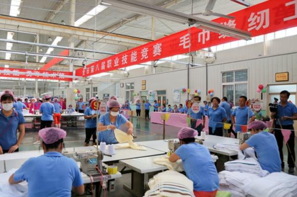 紡織商會副理事長單位、面料分會副理事長單位——孚日集團股份有限公司于6月17日在高密市舉辦第八屆職業(yè)技能競賽毛巾縫紉工比賽。本次競賽采取拔尖推薦、隨機抽取兩種形式,共46名選手參賽。孚日股份總經(jīng)理吳明鳳到賽現(xiàn)場進行觀摩指導(dǎo)。