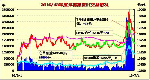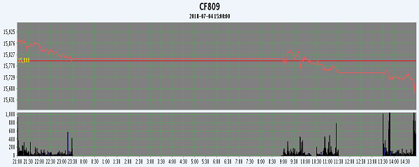 7月4日隔夜鄭棉回落,今日早盤在平倉盤打壓下減倉下跌,日線形成陰線。日內(nèi)成交量萎縮,持倉量減少?;久媲闆r:周二美國西德州高溫干燥天氣持續(xù),至周三白天最高溫度仍將在32℃以上。周四預(yù)計(jì)將有冷鋒過境,氣溫可能將有所降低。目前西德州急需降雨天氣,但近期預(yù)報并無明顯降雨。