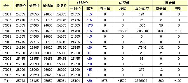 主力CY810合約當(dāng)日交易走勢
